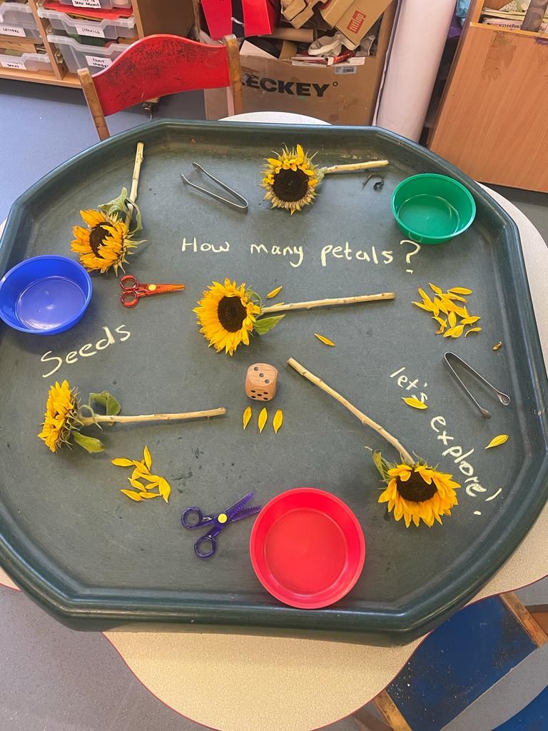 Don’t throw away old flowers, they can be used in activities to promote maths . . . lots of counting, number recognition and opportunities for fine motor skills using tweezers and scissors and even better the children will have lots of fun!